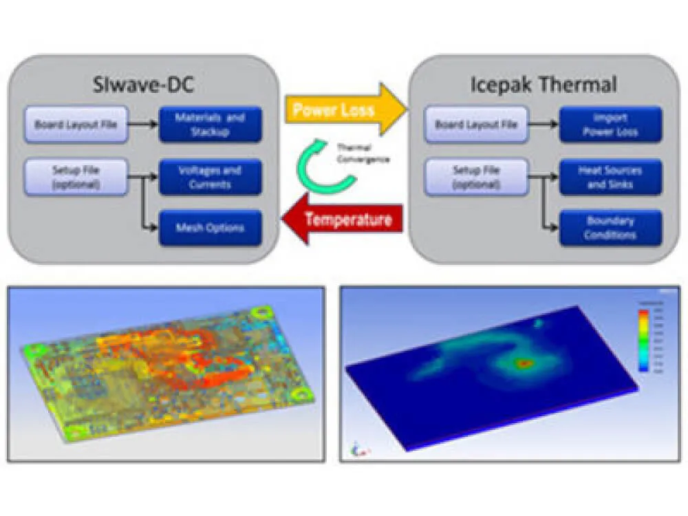 Ansys SIwave je propojitelný s ostatními programy Ansys portfolia pro provedení multifyzikální analýzy elektrických komponent. Jednou z možností je export mapy rozložení výkonu z programu Ansys SIwave do Ansys Icepak. Toto multifyzikální řešení umožňuje přesné teplotní modelování pouzder integrovaných obvodů a DPS využívající DC výkonové ztráty z programu SIwave jako tepelný zdroj. Icepak řeší problémy spojené s vedením tepla z elektronických součástek, které může způsobit předčasné selhání komponent v důsledku přehřátí. Tepelné namáhání pak lze vyhodnotit v programu Ansys Mechanical. Tento přístup umožňuje provádět multifyzikální analýzu EM a tepelného namáhání pro kompletní pochopení konstrukce před zahájením výroby.